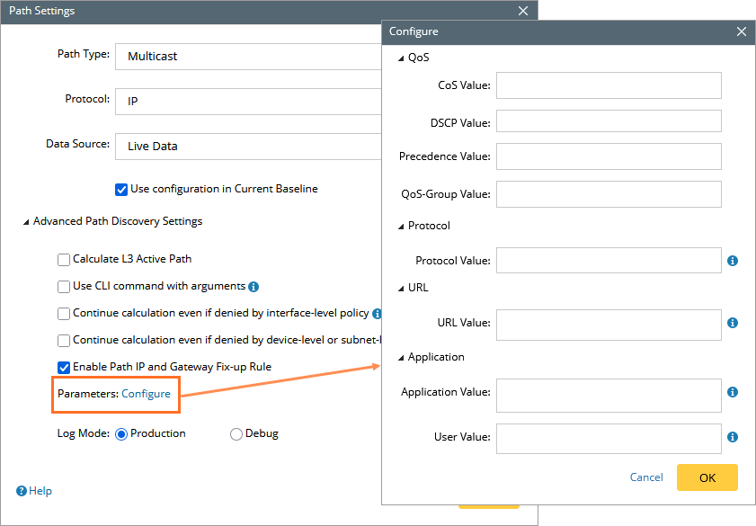 You can define the ways to handle ACL or Policy and gateway during a path calculation in the Advanced Settings:
