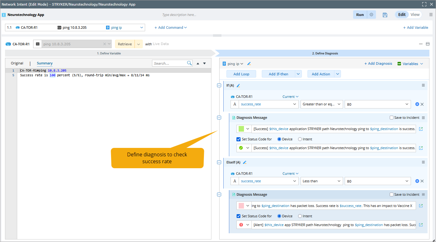 You can define a Path Intent to document the diagnosis logic used when the network is healthy. This intent can be associated with a specific network path.