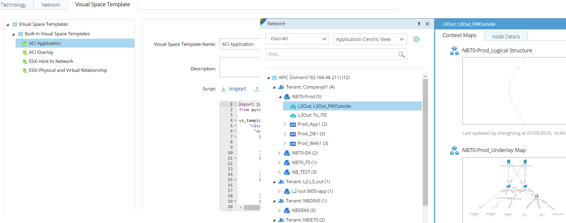 The Technology tab is used to add new technology and define the method of building data structure for the technology in the system. The definition includes the methods of discovery, benchmark, building topology, and common API Interfaces to parse device data. The data and network model of the technology is defined through scripts in TechSpec.