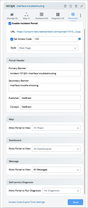 You are allowed to customize the incident portal in the incident pane and control what is visible inside the Incident portal. In addition, the portal function is intuitively presented in the incident pane to encourage users to use it for collaborative troubleshooting.