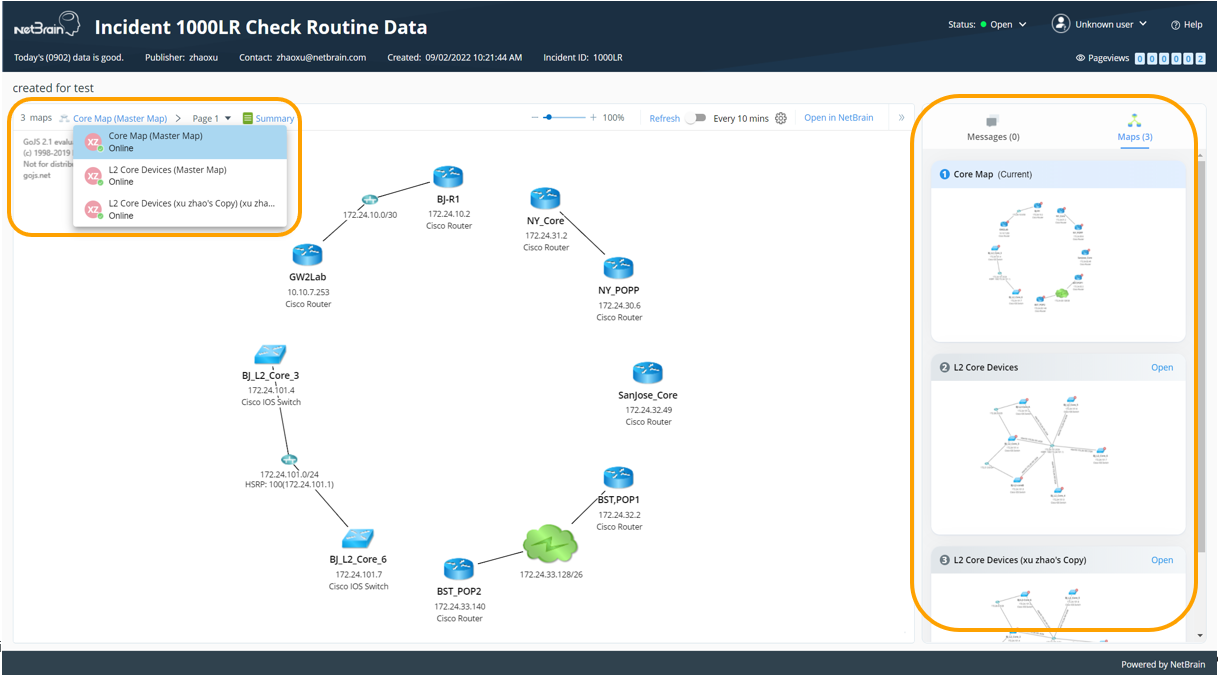 You can share the personal map from the copies to the incident portal in the Map pane for others without NetBrain seat license to view.