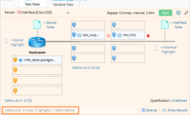 “No Data View or Alert defined. Please choose a variable in Text View or Variable View.”