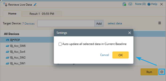 Tip: To save the retrieved data as the latest copy for future comparison, click the settings icon and enable the Auto update all selected data in Current Baseline.