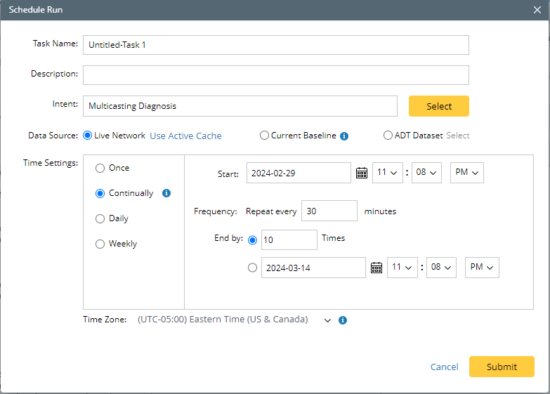 - Able to set the data source, execution time, and frequency (Once, Continually, Daily, and Weekly).