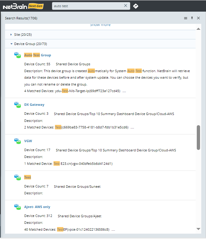 - Press Enter. The search results are displayed with the matched keyword highlighted.