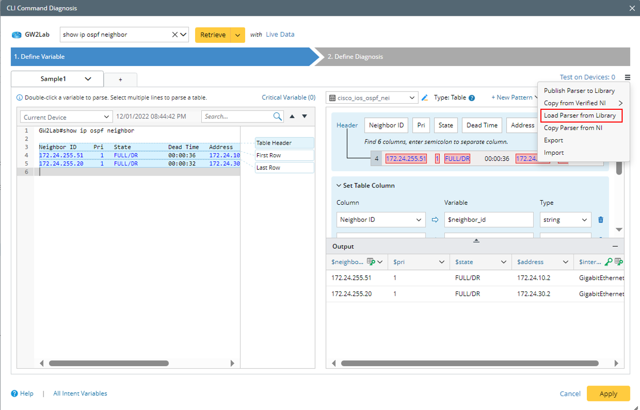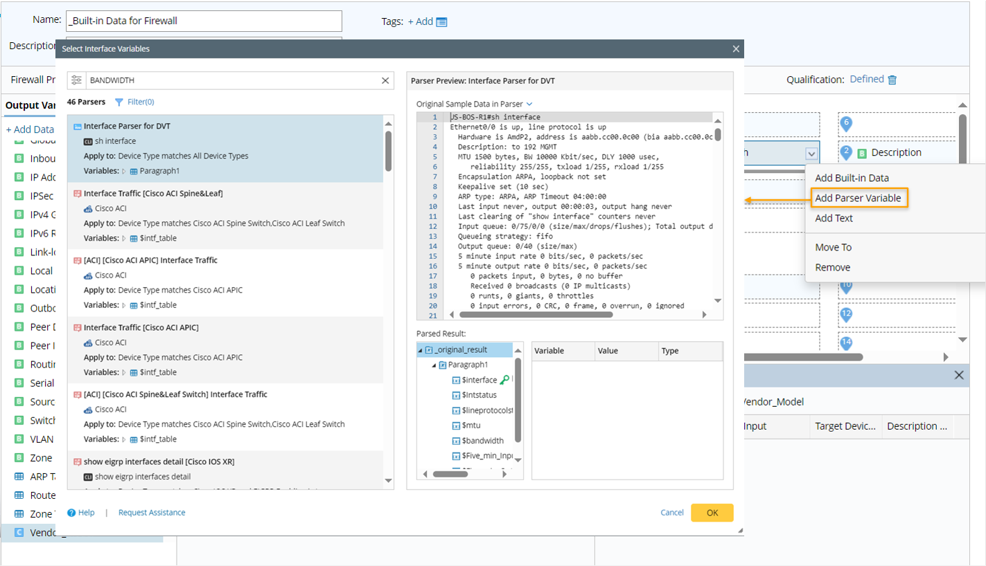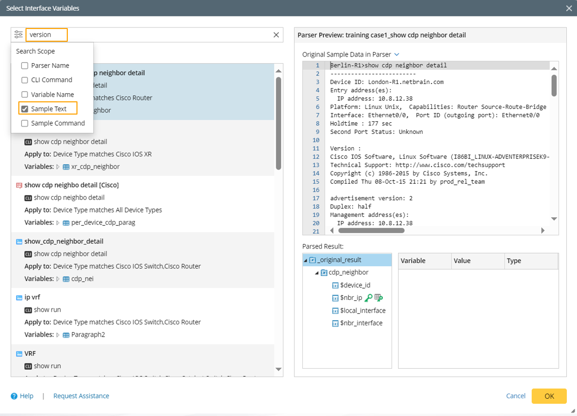 Parser Discovery Window appears only when you need to select or load a Parser in NetBrain Automation functions: