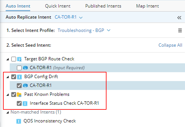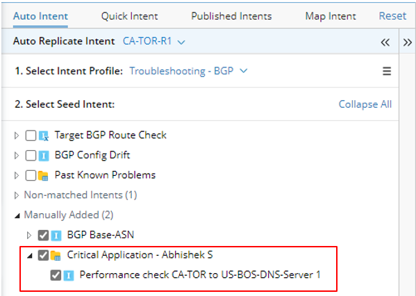 - From the menu in the Select Intent Profile section, select the Select Intent from Auto Intent Folder option.