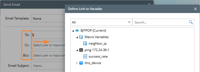 Note: The To, Cc, and Bcc fields all support entering variables.