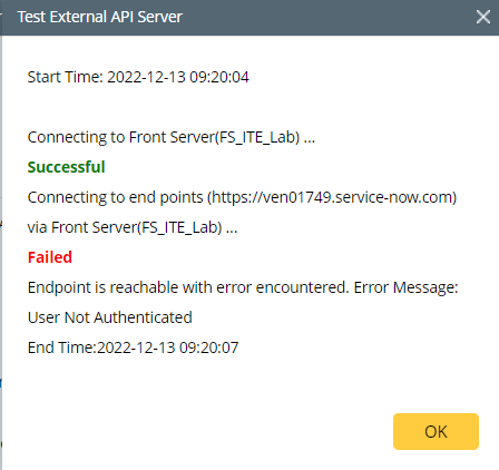 - Server Name:ServiceNow API Server <Front Server>