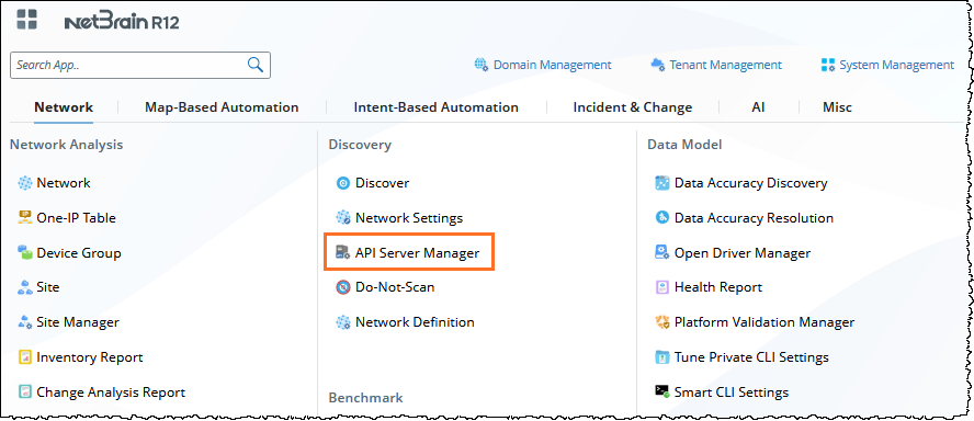 in your NetBrain desktop and select API Server Manager.