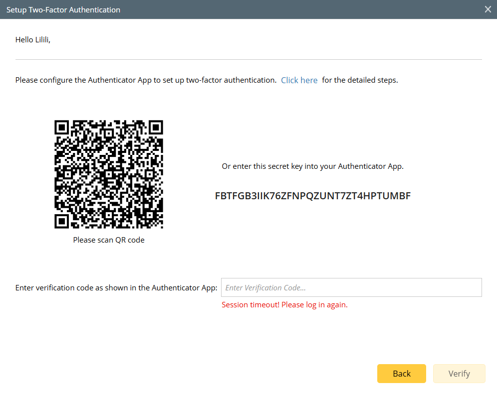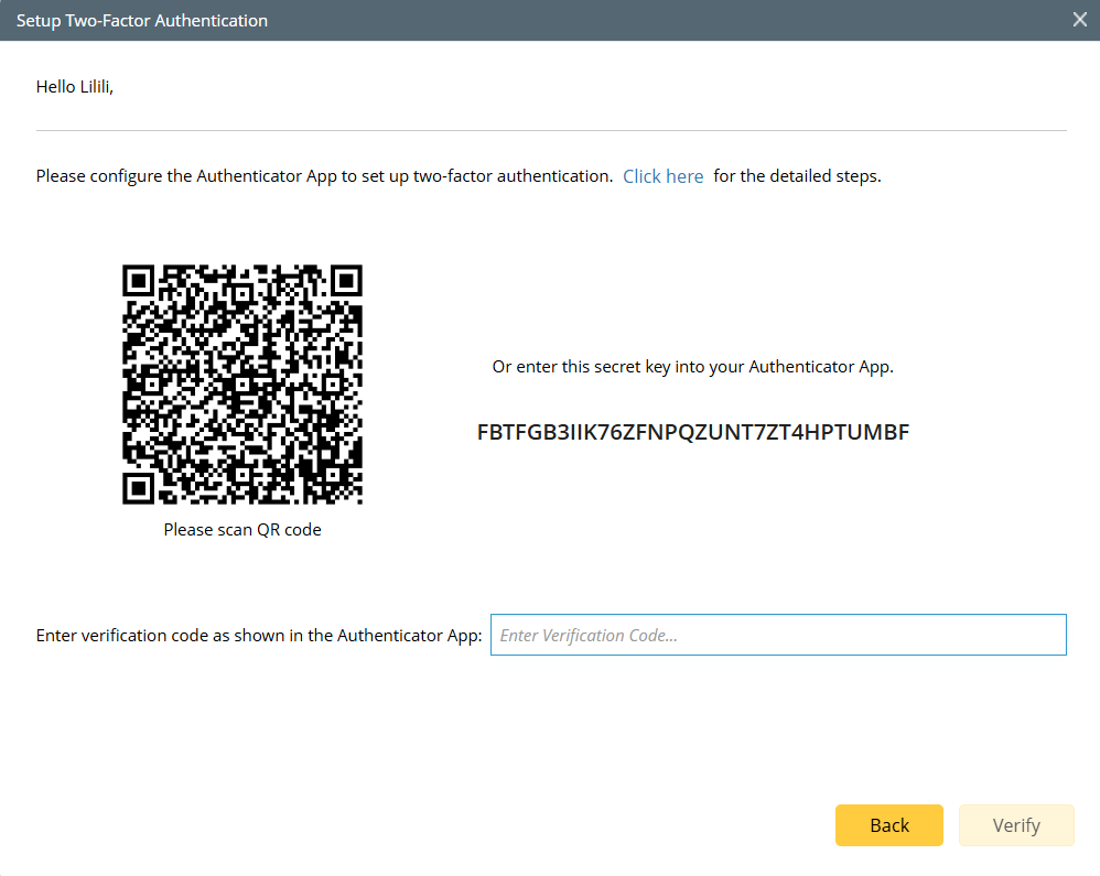 Note: Click the "Click here" link, then a brief guide is provided for setup two-factor authentication with Authenticator App.