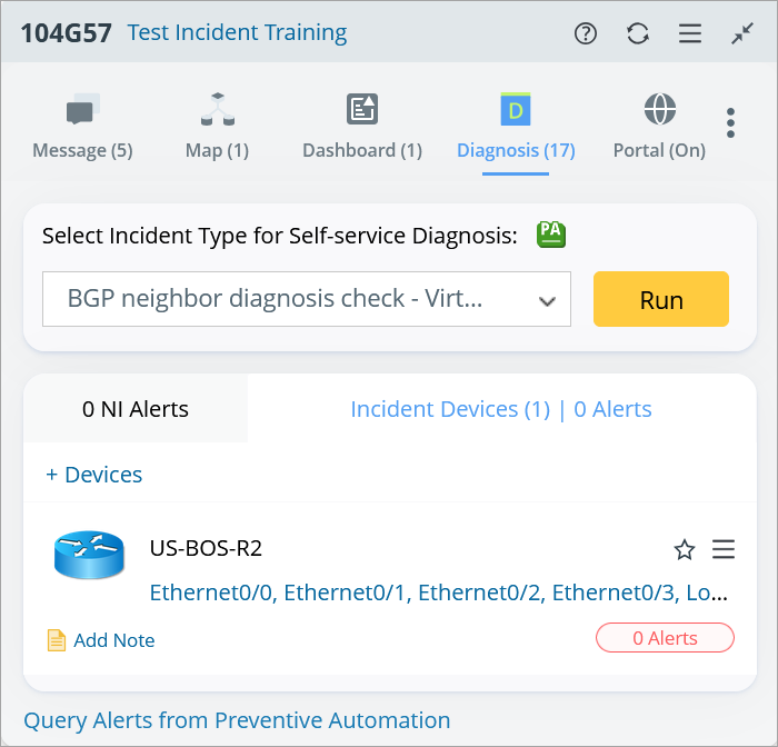 Collaboration Session is the main location for you to share your perspectives, add maps and devices related to troubleshooting, run diagnosis, view the diagnosis results, and configure portal settings.