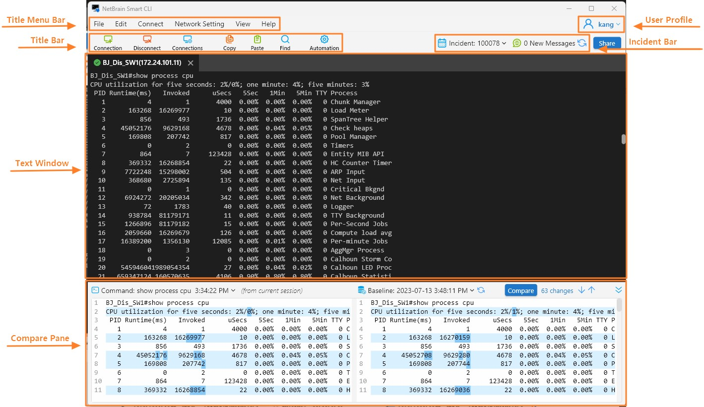 Command-line interfaces (CLI) are still the most popular tool to troubleshoot network issues. NetBrain Smart CLI is an advanced CLI tool to integrate the dynamic mapping, executable Runbook, compare and collaboration features around the traditional CLI process, including: