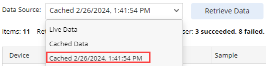 Cached Data(from live retrieval): The retrieved data stored in the database. Each previous data retrieval will be stored and accessible in the drop-down list.