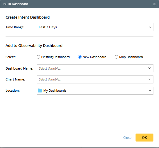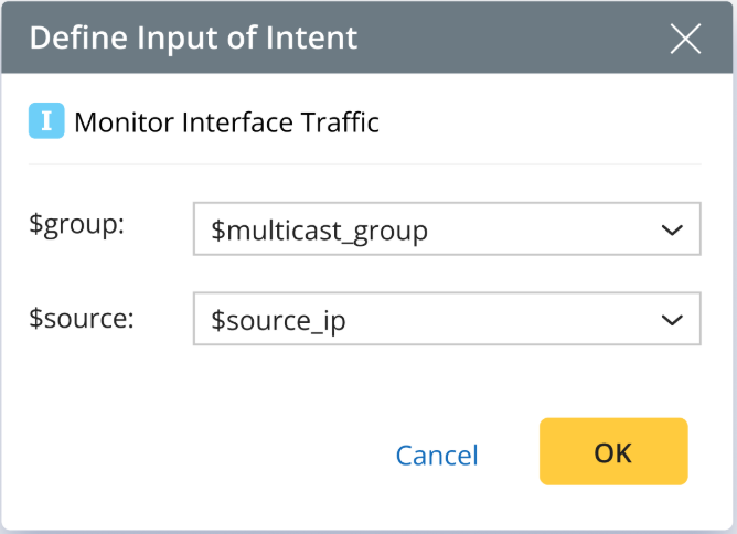 Note: The intent scope cannot be defined here. During runbook instantiation, all intents will be included in the dashboard. To exclude certain intents, manually edit the dashboard post-instantiation.