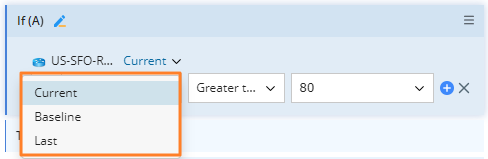 | Greater than | If the text of the left number variable is more than the text of the right number variable, this result is True. | increasing_error Greater than 3 | ||