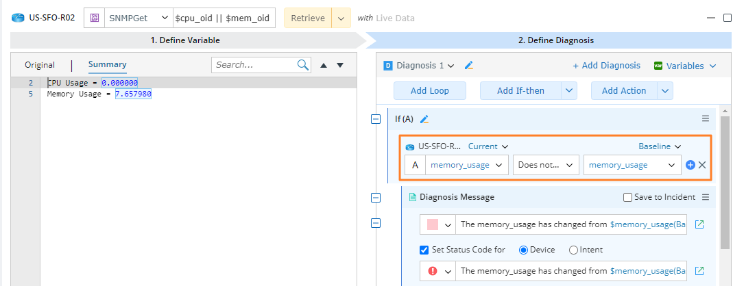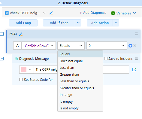 When you add a diagnosis to a NI, you can define various diagnosis actions to make the NI more flexible and verify the network design more accurately.