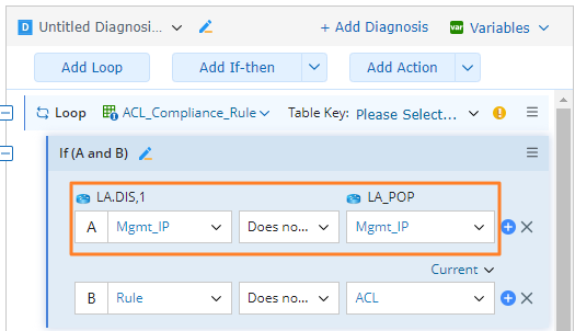 | Does not contain | If the text of the left string variable does not contain the text of the right string variable, this result is True. | Left: 10.11.11.11 10.8.8.8 Right: 10.8.1.49 | ||