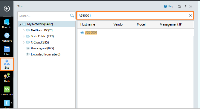 - To find the added device, click Site on the taskbar and search for the device name, and then press Enter to see the device.
