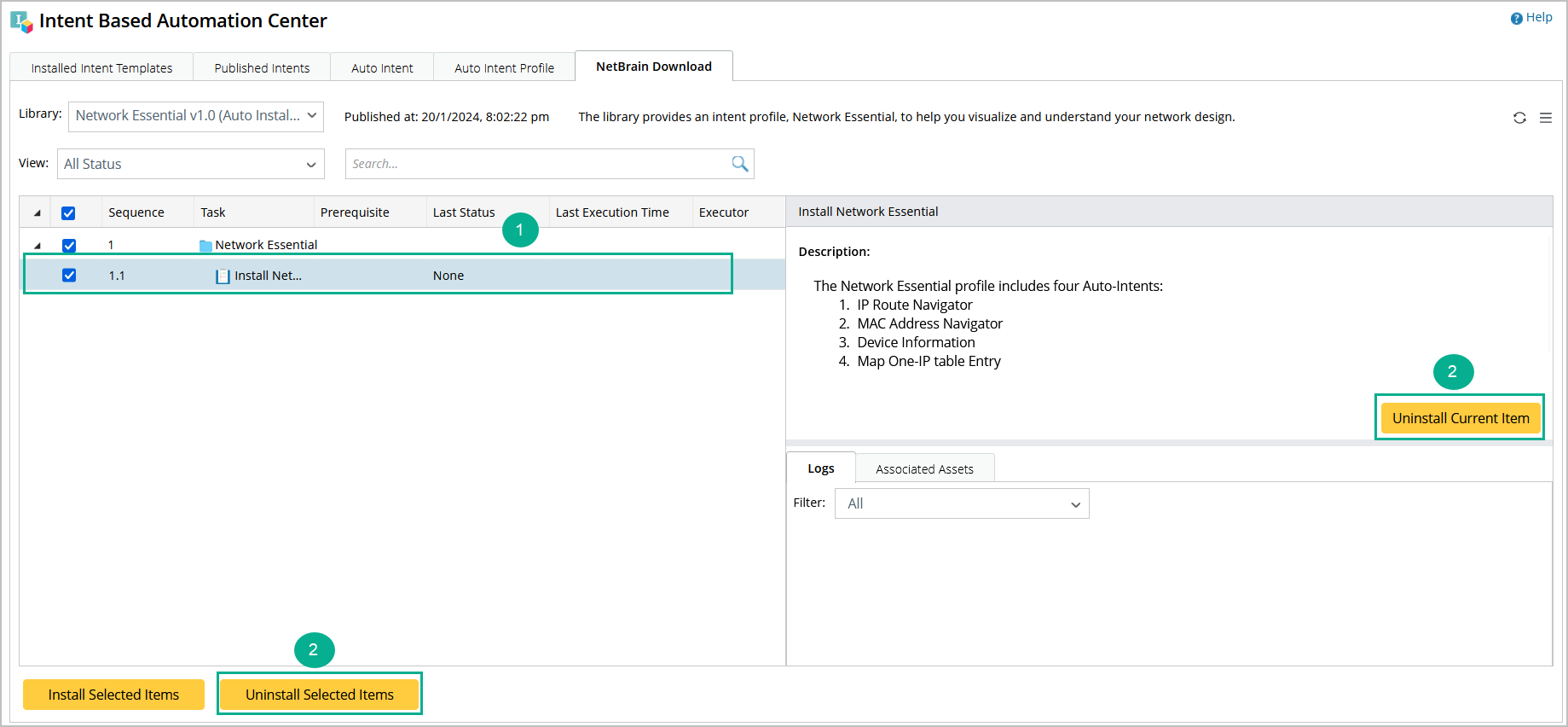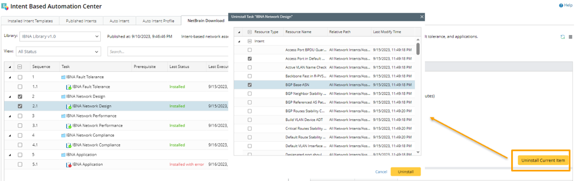 - Click either Uninstall Current Item from the right pane or Uninstall Selected Items from the bottom left.