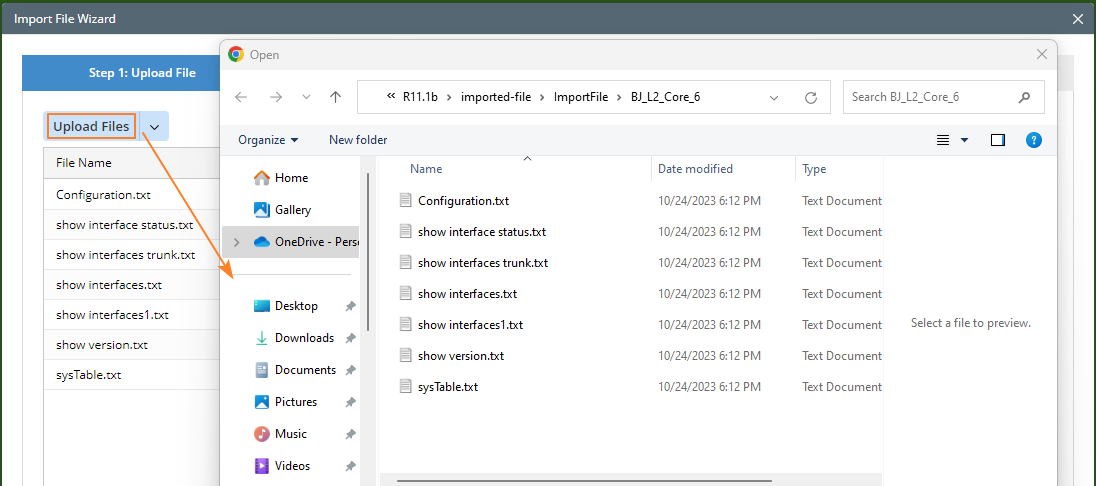 Note: All the supported file formats are: .txt, .config, .log, .cli, .cdp, .mac, .route, .stp, .nct, .conf, .arp, .zip. |