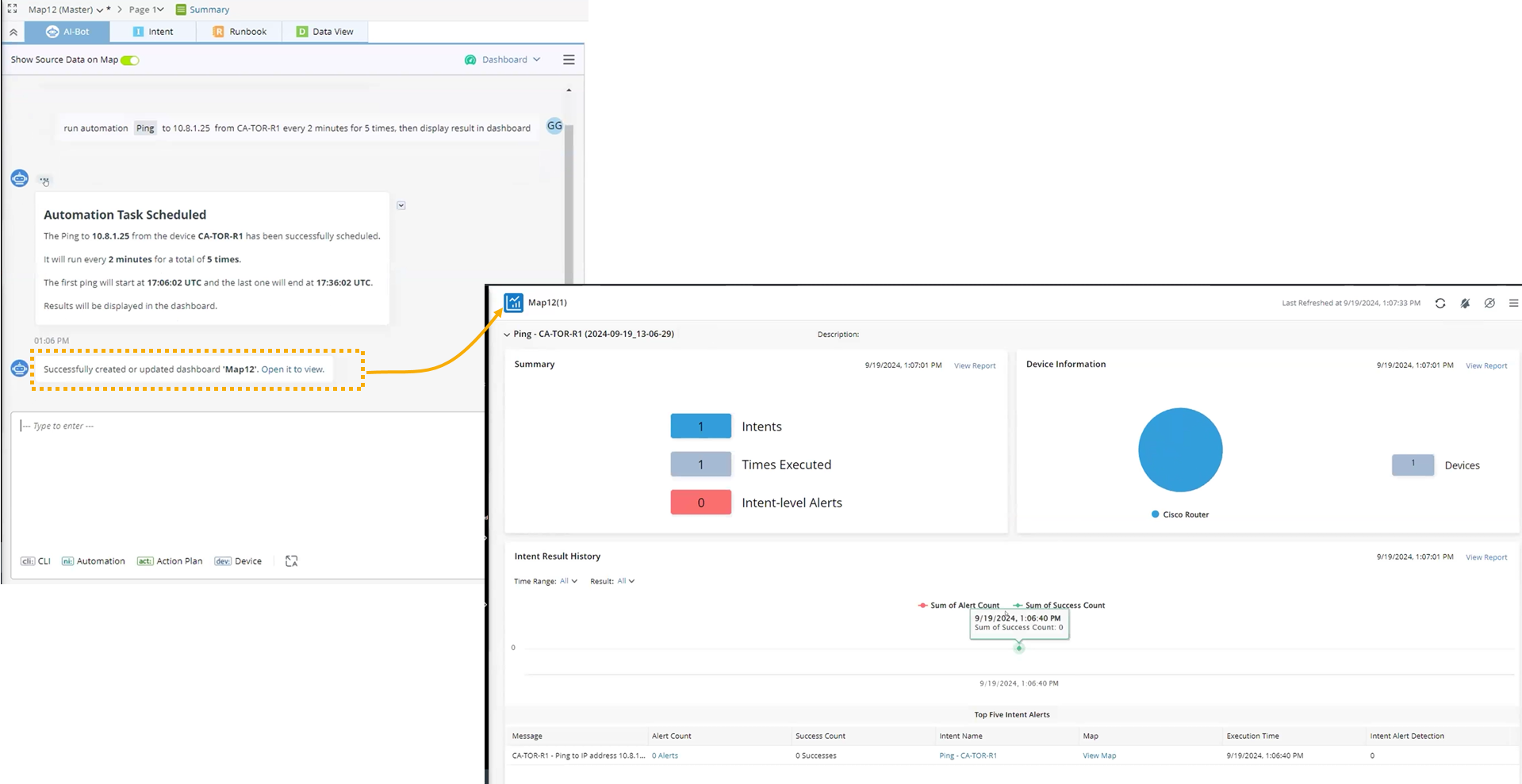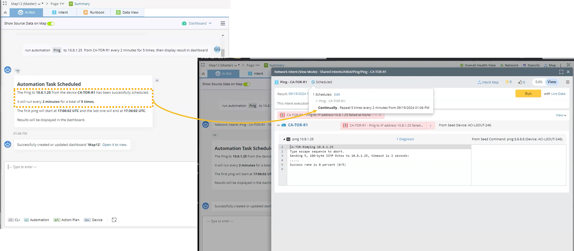 Run an automation to ping a certain IP from a device and ping it every 2 minutes for 5 times to ensure it’s stable.