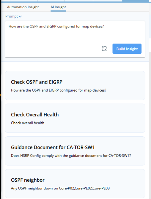 - After starting a new insight, users can input their question as an initial prompt. LLM will search for data within resources defined/enabled in Insight Manager.