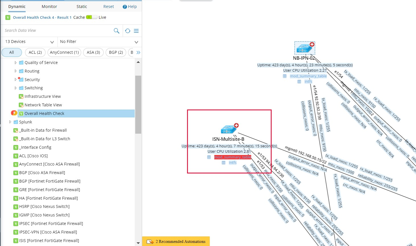 After Applying a Data View Template to a map, you can view not only the last copy of historical data and Golden Baseline but also the live data analysis. When it doesn't match the Golden Baseline Rule, it will be highlighted in red color to alert users.