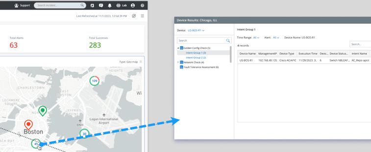 - The alerts are calculated using the device alert status code across Intent Dashboards in selected dashboard groups in the observability dashboard.