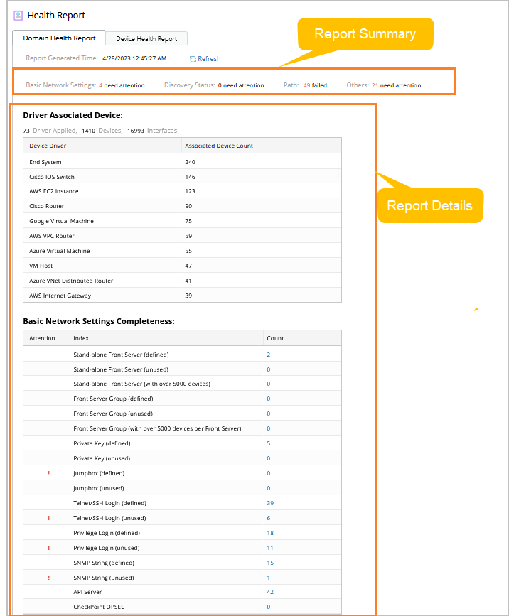 The domain administrators can leverage the Domain Health Report to accelerate the tune-up phase (customization for topology/path data accuracy) before delivering a fine-tuned domain to end users. The report provides key factors and more detailed statistics about domain health. As a benefit, the domain administrators can get an overview of the current domain status, proactively focus on the items that need their attention, and resolve the potential problems in a domain as early as possible.