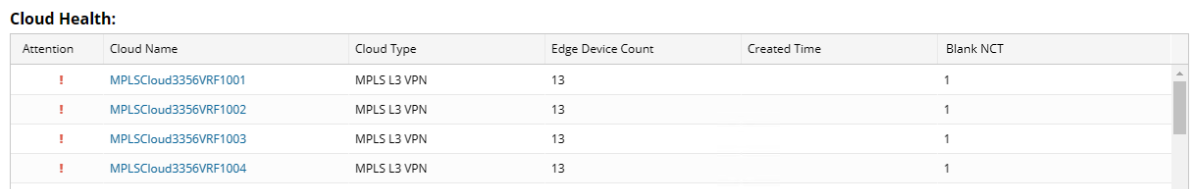 This area shows the basic information of the existing clouds in the current domain. Blank NCT includes those tables with headers only. When the count of blank NCT exceeds 0, the attention icon
