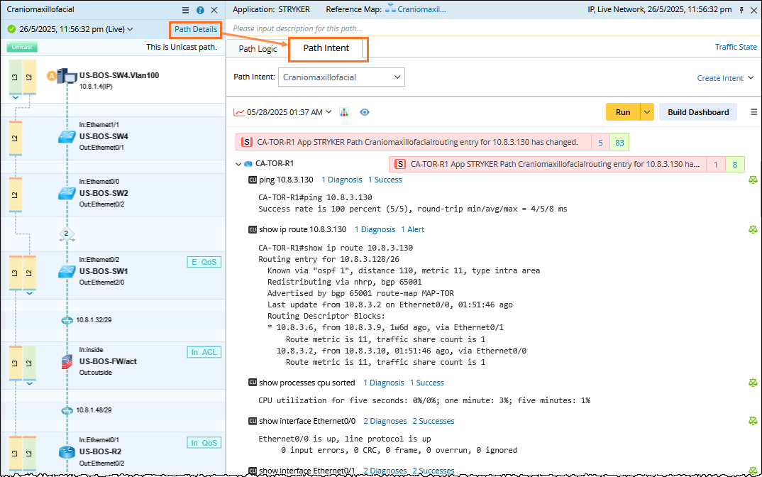- Path Intent Pane: You can define Path Intent, execute Path Intent, and can view its results.