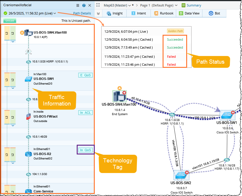 - Technology Tag: The Technology Tags show the network technology checked by the path discovery logic.