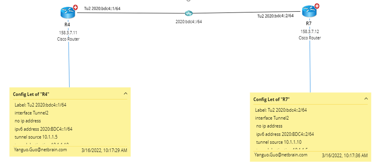 NetBrain supports visualizing IPv6 L3 topology, containing the following network technologies: