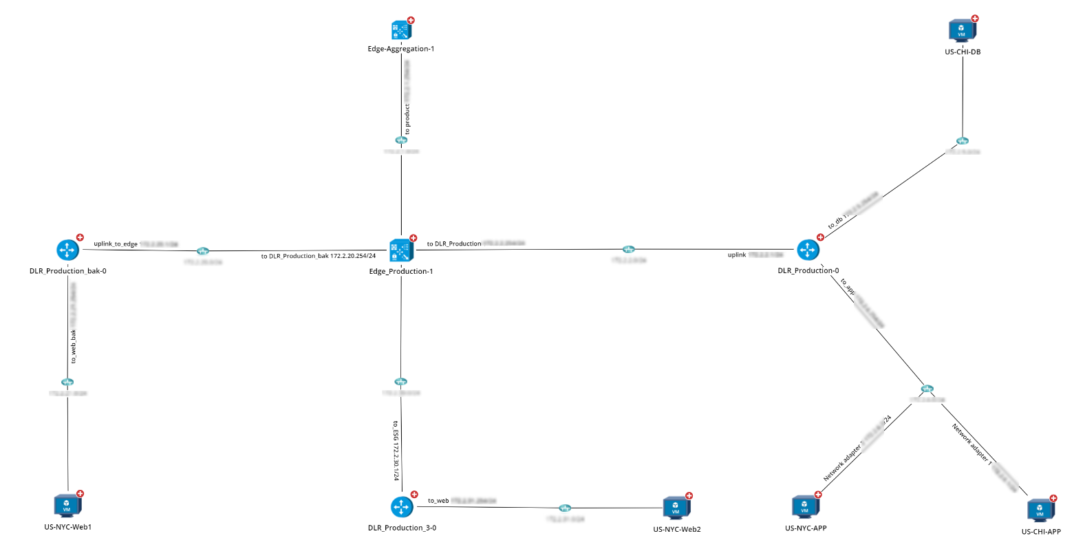Example: A Visualized Topology Map of an NSX-V Distributed Logical Router.