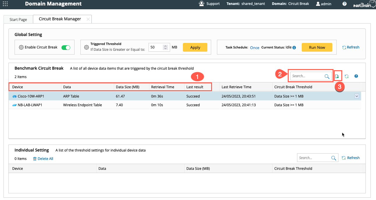 The Domain admin can use Circuit Break to detect and record large data items in the regular Benchmark task and move them to the Circuit Break Benchmark automatically for low-frequency data collection, and this will ensure the regular Benchmark operates at a faster pace.