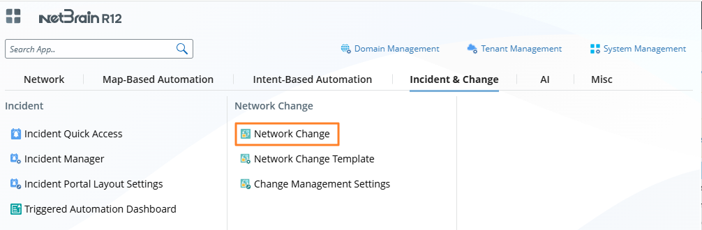 and select Incident & Change > Network Change.
