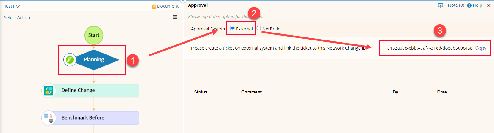 /** * ServiceNow Script Example, Please follow this script * */ (function executeRule(current, previous /*null when async*/) { var NB_API_PREFIX = 'http://your web API server address/ServicesAPI/API/V1/'; // login to get token & logout var tokenEndPoint = NB_API_PREFIX + 'Session'; var tenantDomainEndPoint = NB_API_PREFIX + 'Session/CurrentDomain'; // credential to log into netbrain var credential = { username: 'admin', password: 'admin' }; var tenantDomain = { tenantId: 'xxx', domainId: 'xxx' }; // api time out default is 10 seconds var API_TIME_OUT = 10 * 1000; // store the netbrain api token var nbToken = ''; // ********************** var vendor = 'ServiceNow'; var stateMapping = { 'not requested': 0, // planning 'requested': 1, // pending 'approved': 2, 'rejected': 3 }; /** * Request the token * @return hasToken: bool * */ function login() { var request = newRequest(tokenEndPoint, 'POST', credential); try { gs.info('send request to netbrain, get the token'); // var response = request.execute(); var responseBody = response.getBody(); var obj = new JSON.parse(responseBody); nbToken = obj.token; return nbToken.length > 0; } catch (ex) { // todo handle get token failed exception where to check this error msg gs.error('get netbrain token failed.'); gs.error(ex.getMessage()); return false; } return false; } /** * logout netbrain, remove token * @return * @constructor */ function logout() { var body = { token: nbToken }; var request = newRequest(tokenEndPoint, 'DELETE', body); try { gs.info('logout netbrain.'); request.execute(); gs.info('logout netbrain success.'); } catch (ex) { gs.error('get netbrain token failed.'); gs.error(ex.getMessage()); // should retry? } } function addActivity(message) { current.work_notes = message; current.update(); } /** * Request to set tenant & domain * @return success: bool * */ function setTenantDomain() { var request = newRequest(tenantDomainEndPoint, 'PUT', tenantDomain); try { gs.info('set tenant & domain info.'); var response = request.execute(); var responseBody = response.getBody(); var obj = new JSON.parse(responseBody); return true; } catch (ex) { gs.error('set tenant & domain failed.'); gs.error(ex.getMessage()); // should retry? return false; } return false; } /** * make an http call to netbrain to bind change request id to a cm runbook id * @return * */ function apiCMBinding() { var ticketId = current.getValue('sys_id'); var runbookId = current.getValue('netbrain_cm_id');// this might be different for different customer var ticketName = current.getValue('number'); // this might be different for different customer var endPoint = NB_API_PREFIX + 'CM/Binding'; var snState = current.getValue('approval'); if (stateMapping[snState] == null) { gs.error('cannot find the correspond state from netbrain.'); return; } var postData = { runbookId: runbookId, ticketId: ticketId, vendor: vendor, ticketName: ticketName, state: stateMapping[snState] }; var request = newRequest(endPoint, 'POST', postData); try { gs.info('send change management binding request.'); var response = request.execute(); var responseBody = response.getBody(); var obj = new JSON.parse(responseBody); if (obj.statusCode == 0) { gs.info('change management binding to ' + runbookId + ' success.'); addActivity('change management binding to ' + runbookId + ' success.'); } else { gs.info(obj.statusDescription); // please change it to a proper msg, and this message is going to display on service now page gs.addErrorMessage('binding Failed: ' + obj.statusDescription); addActivity('binding Failed: ' + obj.statusDescription); } } catch (ex) { gs.error('change management binding failed.'); gs.error(ex.getMessage()); // should retry? gs.addErrorMessage('binding Failed: ' + ex.getMessage()); addActivity('binding Failed: ' + ex.getMessage()); } } /** * make a http call to netbrain to set cm runbook approval state */ function apiUpdateCMApprovalState() { var ticketId = current.getValue('sys_id'); // this might be different for different customer var runbookId = current.getValue('netbrain_cm_id');// this might be different for different customer var endPoint = NB_API_PREFIX + 'CM/approval/state'; var ticketName = current.getValue('number'); // this might be different for different customer var snState = current.getValue('approval'); if (stateMapping[snState] == null) { gs.error('cannot find the correspond state from netbrain.'); return; } var postData = { runbookId: runbookId, ticketId: ticketId, vendor: vendor, ticketName: ticketName, state: stateMapping[snState] }; var request = newRequest(endPoint, 'POST', postData); try { gs.info('set change management state.'); var response = request.execute(); var responseBody = response.getBody(); var obj = new JSON.parse(responseBody); if (obj.statusCode == 0) { var msg = 'set change management(' + runbookId + ') to state ' + snState + ' success.' gs.info(msg); addActivity(msg); } else { gs.info(obj.statusDescription); gs.addErrorMessage('update approval failed: ' + obj.statusDescription); addActivity('update approval failed: ' + obj.statusDescription); } } catch (ex) { gs.error('set change management state failed.'); gs.error(ex.getMessage()); gs.addErrorMessage('Error: ' + ex.getMessage()); addActivity('Error: ' + ex.getMessage()); } } function newRequest(url, method, data) { var request = new sn_ws.RESTMessageV2(); request.setEndpoint(url); request.setHttpMethod(method); request.setRequestBody(JSON.stringify(data)); request.setRequestHeader('Accept', 'application/json'); request.setRequestHeader('Content-Type', 'application/json'); request.setRequestHeader('token', nbToken); request.setHttpTimeout(API_TIME_OUT); return request; } /** * update a value of service now */ function updateColumnValue(table, primaryKey, primaryVal, targetColumn, targetVal) { var gr = new GlideRecord(table); gr.addQuery(primaryKey, primaryVal); gr.query(); if (gr.next()) { gr.setValue(targetColumn, targetVal); gr.update(); } } /** * make a http call to netbrain to binding change request 