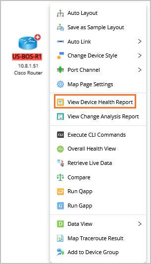 - On a map page, right-click the target device and select Diagnosis > View Device Health Report.
