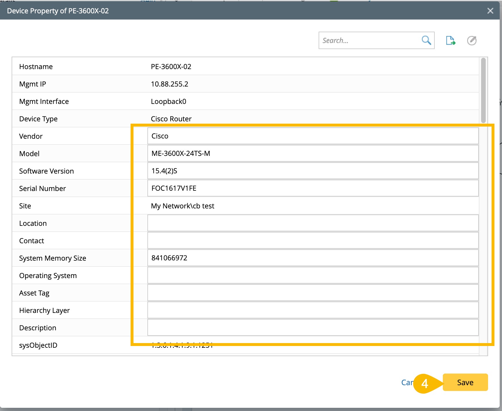 Note: If the Manual Editing attribute of the property is disabled, its value cannot be customized in the Device Details pane.
