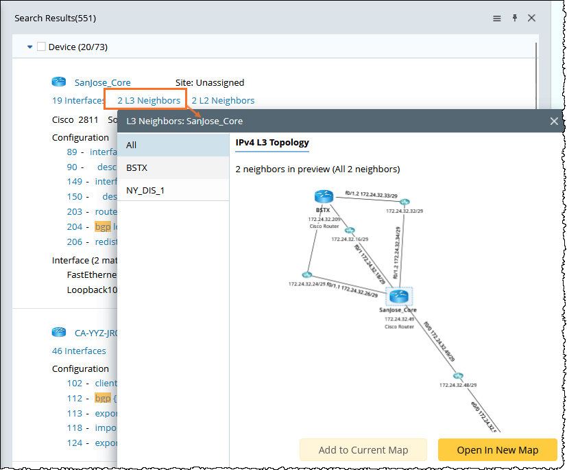 Tip: To include the target device along with its L2 or L3 topology neighbors, click L3 Neighbors or L2 Neighbors on the device.