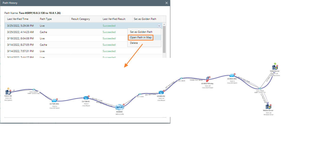 Tip: The Application Manager stores the last calculated and earlier historical paths. To view and map the history paths, right-click a path, select View Path History, and right-click a history path to open it on a map from the Path History pane.
