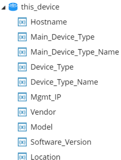 In some scenarios, users may want to perform diagnoses on specific objects. For example, build a diagnosis and generate output based on data from the device (‘$device’ object), not just the current device (‘$this_device’). NI supports the native objects in NI: device, interface, map, path, site, device group, and file. Each type of object has a set of property variables and methods.