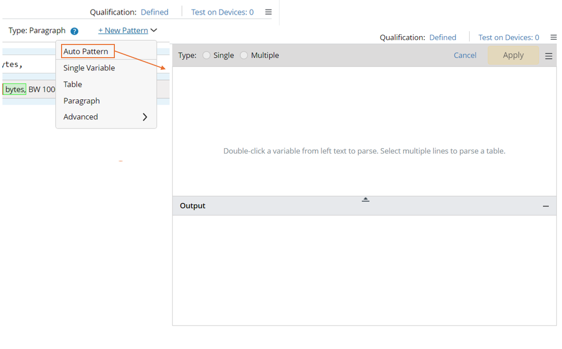 - Select Auto Pattern from the + New Pattern drop-down menu to add an empty auto parser if some patterns are already created, and you want to create new pattern by auto parser mode.