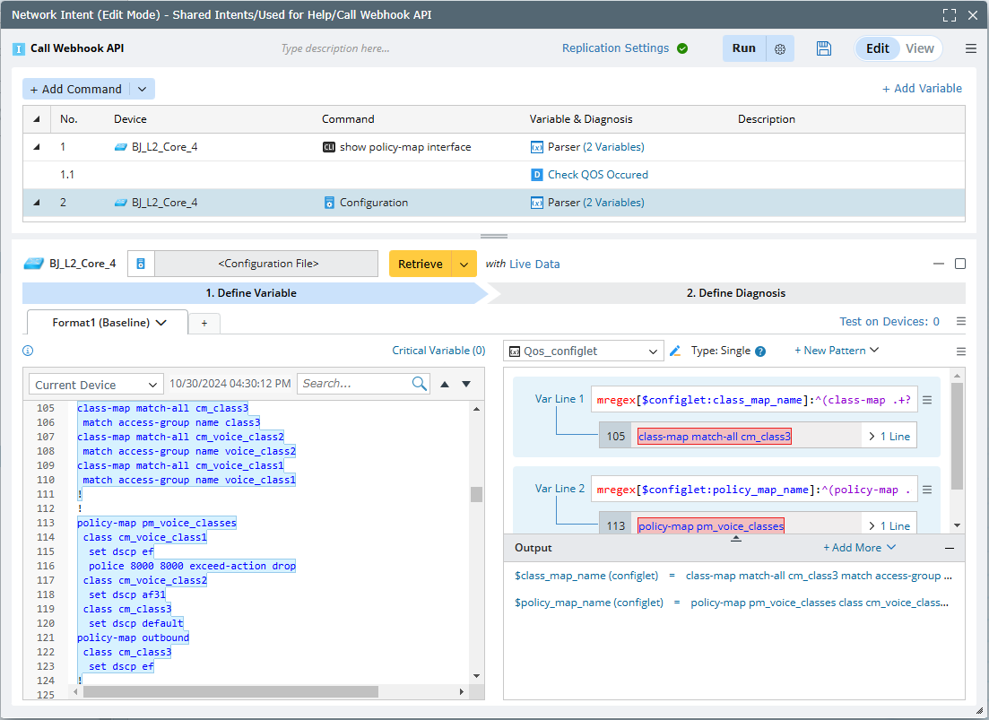 - Add CLI diagnosis for device “BJ_L2_Core_4”. Get parsed variables from the command Configuration file.