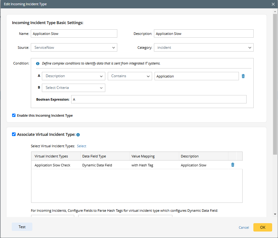 - Install this intent associated with the “Application Slow check” Virtual incident type.