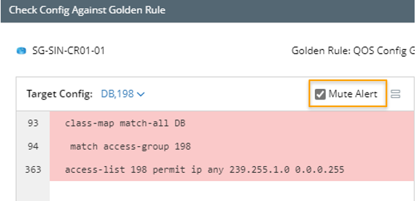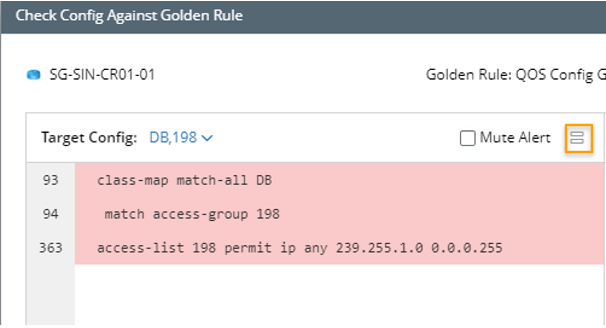 icon in the Golden Config area in the right pane, then select a golden config already defined in the golden config rule. in this example, only one golden config is matched, therefore, the golden config list is hidden. - Click the