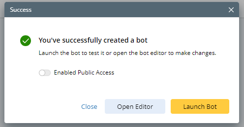 - In the Create Bot window, enter the Bot Name.