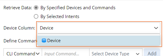 - By Specific Devices and Commands: Define the CLI commands and applicable device types. During manual data retrieval, the command data will be obtained per device based on the corresponding device type.