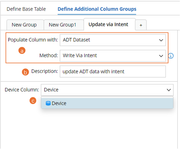 - Description: Input descriptions for the column group to describe its use and function, e.g., Update ADT data with intent.